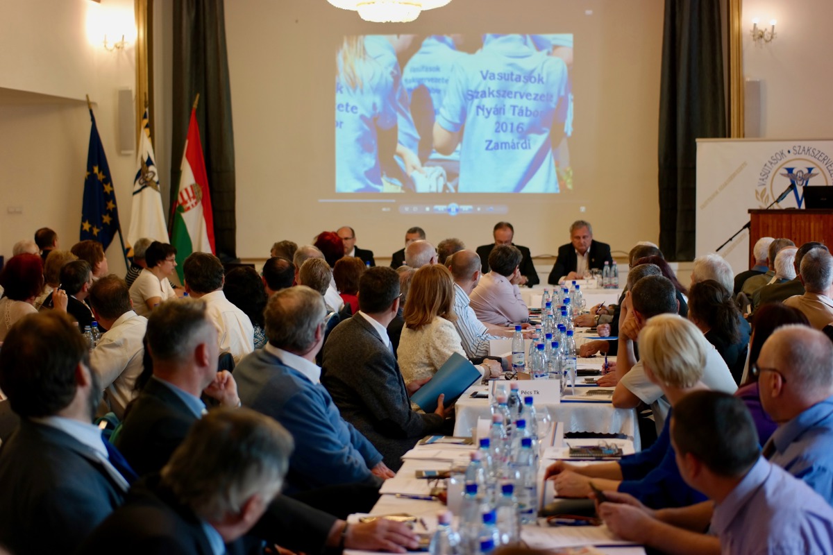 A napirendek sorában a 2016. évi Kongresszus óta eltelt munkáról adott írásos jelentés mellé szóbeli kiegészítést tett Meleg János elnök. Mint mondta, a Munka Törvénykönyve 2012. évi változása a munkaidő kedvezmény gyökeres megváltoztatását vonta maga után, amire kellett reagálni szakszervezetünknek is, amely nem ment zökkenőmentesen. A pénzügyi területen stabilitásra volt szükség, valamint a vagyonfelélés megállítása volt a cél. A szövetségi politikában is voltak nehézségek, hiszen a befektetett energia és az anyagi támogatások nem hozták az elvárt eredményeket. A kormányzat részéről a tárgyalási hajlandóság sem volt elfogadható, de a MÁV Csoport állandó átszervezése, az ezzel járó feladatok sokasága is nehezítette munkánkat.